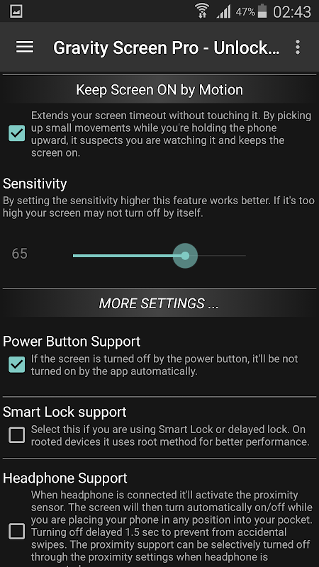 • Turn Screen On by Motion: If the screen is off and it's facing up the device can be woken up by moving it.