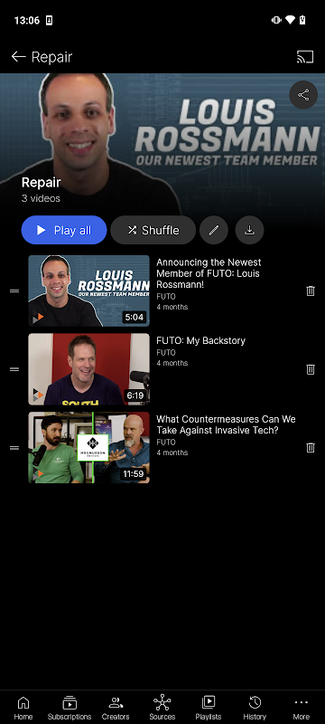 - 기기 내 데이터 저장: 재생 목록, 구독, 설정 및 다운로드한 비디오는 오프라인 상태로 유지되어 비공개적이고 안전한 탐색 환경을 보장합니다.