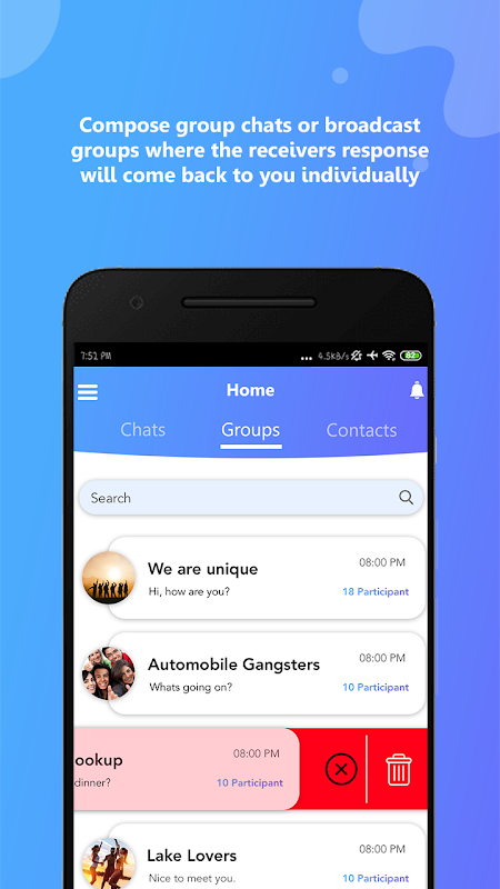 그룹 문자를 보낼 때 탈출구가없는 문자 메시지의 회오리 바람에 휘말릴 수 있습니다! 그룹 텍스트 앱을 사용하면 그룹 메시지를 제어 할 수 있습니다! 언제든지 압도적 인 그룹에서 자신을 제거 할 수 있으며 그룹 메시지를 배치하기 전에 허용하거나 거부 할 수있는 옵션이 있습니다. 그룹 텍스트 앱은 또한 iOS에서 안드로이드로 선명한 사진과 비디오를 보내고받을 수있는 기능을 제공합니다.