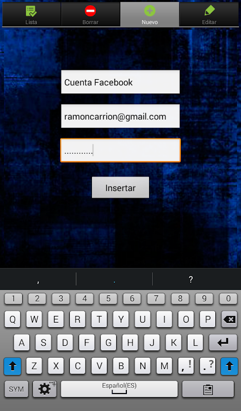 Sencilla aplicación para almacenar datos, olvídese de tener de recordar múltiples cuentas o de usar la misma contraseña para todo, en esta demo completamente operativa puede almacenar todos los datos precisos.