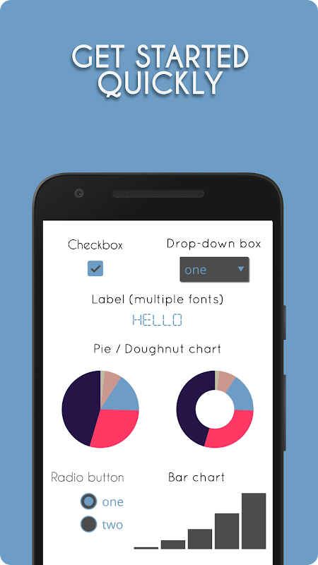 Arduino, ESP32, ESP8266, Raspberry PI, STM32 Nucleo 또는 기타 마이크로 컨트롤러 장치와 같은 상용 보드를 사용하여 Android에서 멋진 그래픽 사용자 인터페이스를 만드세요. 즉시 장치를 제어하고 인터페이스를 변경하세요.