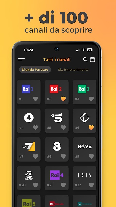 Raiuno, Raidue, Raitre, Rete 4, Canale 5, Italia 1, La7, Rai News 24, Boing, Cartoonito, QVC, TOPCrime, Mediaset Italia Due, Mediaset Extra, NOVE, Canale 20 Mediaset, Cielo, RadioItaliaTV, SKY TG24, Focus , 라이 스토리아, 라이 프리미엄, 아이리스, 라이 요요, 라 5, 라이 4, 라이 5, 라이 스포츠 1, 라이 스포츠 2, 라이 스쿠올라, 라이 걸프, LA7D, 리얼 타임, 지알로, DMAX, TV8, 라이 무비, FRISBEE , K2 , TV2000, 슈퍼테니스, 슈퍼!, 앨리스, 홈 앤 가든 TV, RSI La1, RSI La2.