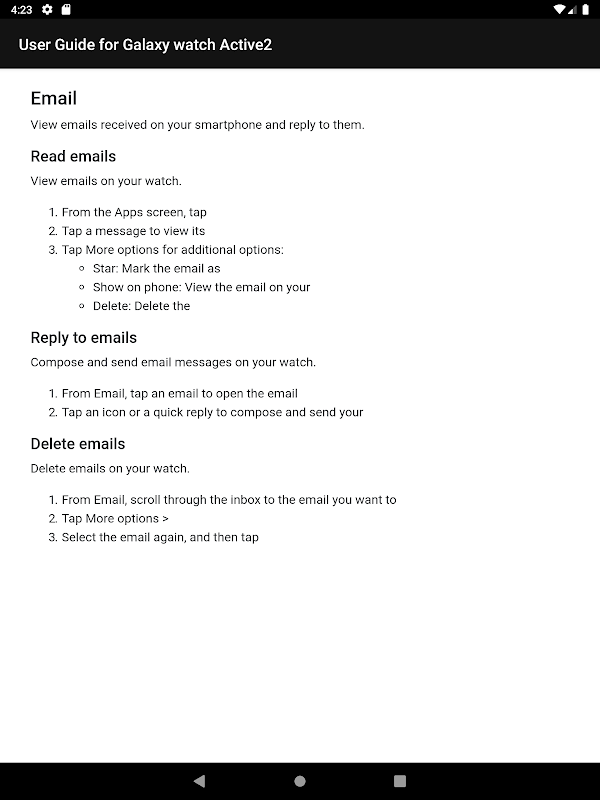 패키지 이름:com.binarytuts.userguideforgalaxywatchactive2