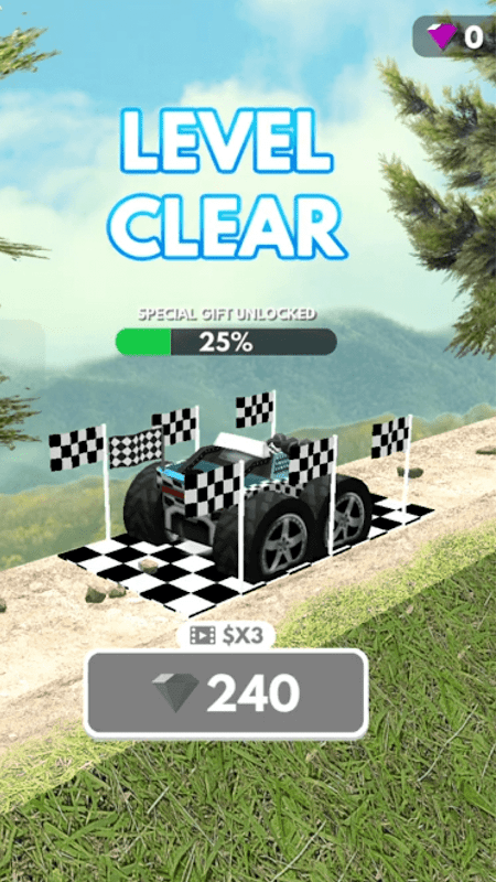 Well, this game pretty much resembles a real rock crawling: very precise throttle control is required to conquer some peaks. The game utilizes unique soft wheels physics. These big soft wheels allow you to climb on craggy rocks and perform terrific stunts!