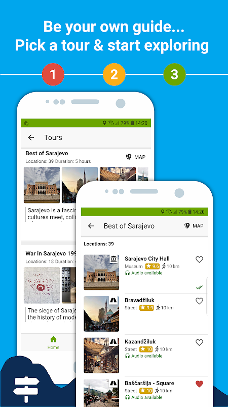 3 시간 분량의 고품질 오디오 기사 (모든 온라인 오프라인 사용 가능 - 인터넷 필요 없음)는 GPS 추적 기능이있는 즉시 사용할 수있는 투어 및 사라예보 오프라인지도로 구성되어있어 도시를 쉽게 탐색하고 Sarajevo의 풍요로운 사나운 역사를 직접 발견 할 수 있습니다.