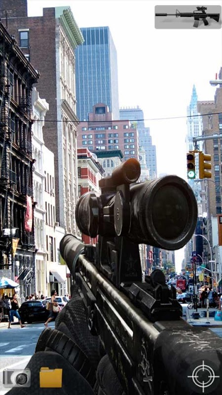 Take one of this great guns at your hands and feel how this looks like in real life. Application will use your camera preview and simulate FPS gun camera game where you can shoot real targets and save gun camera preview.