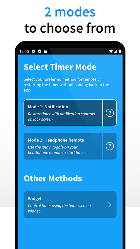 Gym Rest Timer는 2 가지 모드 중에서 선택할 수있는 가능한 한 운동에 방해가되지 않도록 설계되었습니다.