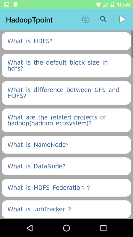 HadoopTpoint app that provides a Quick view and most frequently asked hadoop interview questions in real time and hadoop tutorial. This App is intended to help Big Data Career Aspirants to prepare for the interview on Big Data Related technologies. This app has collection of more than 500+ questions on different Big Data tutorial.HadoopTpoint also providing Hadoop Quiz,hadoop projects,hadoop online course,mapreduce,apache Hive,apache pig,apache sqoop,apache spark,kafka,Mongodb,Hdfs and more big data topics.
