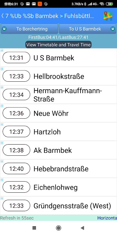 함부르크 버스 / 기차 / 지하철, 인근 POI 검색, 방향 계획에 대한 시간표