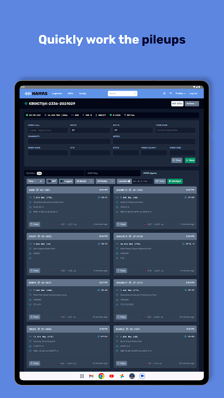 HAMRS Pro는 처음부터 완전히 다시 작성되었습니다. Parks on the Air, Field Day 등과 같은 휴대용 활동에 맞춰진 템플릿을 갖춘 간단한 아마추어 라디오 로거입니다.