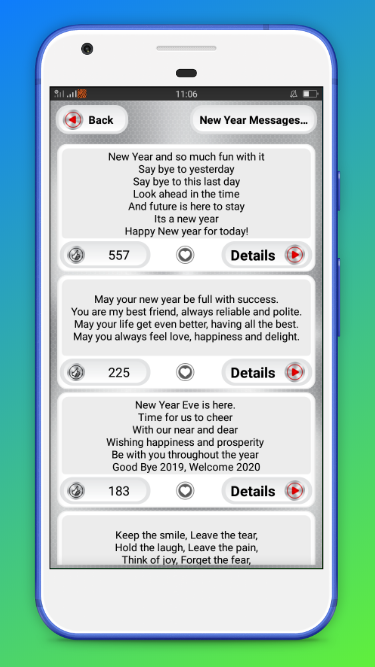 이 새해 복 많이 받으세요 인사말 앱을 사용하면 새해 복 많이 받으세요 상태 또는 Saal Mubarak Messages | 멋진 새해 카드 또는 새해 소원 카드에 메시지 또는 원하는 경우 새해 복 많이 받으세요 재미있는 카드 또는 새해 복 많이 받으세요 메시지의 방대한 컬렉션을 사용하여 소셜 미디어에 대한 새해 캡션을 만드는 것과 함께 소셜 미디어 존재를 만족시키고 디왈리 Naye Saal Mubarak 메시지 및 새해 인사 앱 내에서 새해 복 많이 받으세요.