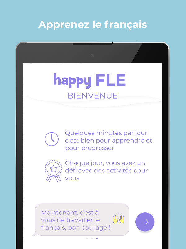 Happy Fle은 프랑스어 초급반을위한 외국어 (레벨 A1)로 불어로 프랑스어를 배우기위한 신청서입니다.
