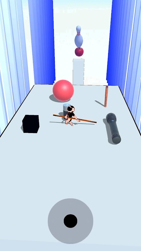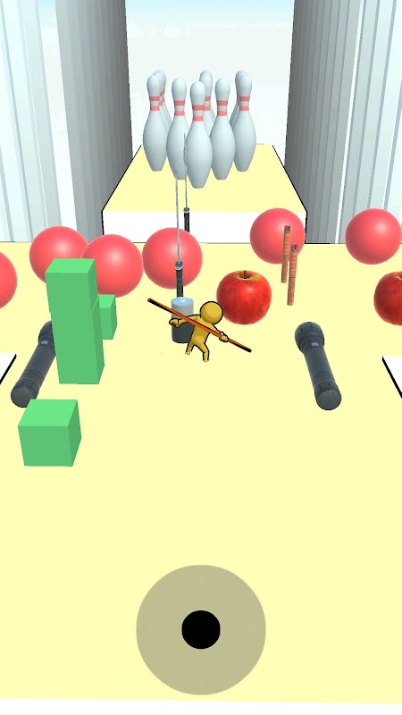 막대기로 바닥에 있는 물건을 쳐서 목표물에 던집니다.