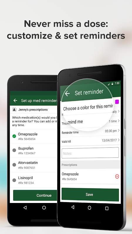 처방전 리필 할 준비가되었을 때 알림을 가져옵니다. 스크립트를 선택할 준비가 즉시 알림 메시지를받을. 당신의 약물을 복용하는 자신에게 알림을 보냅니다.
