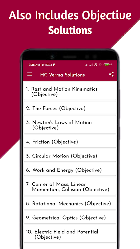 객관적인 솔루션이 포함 된 HC Verma 파트 1 및 2의 오프라인 솔루션.