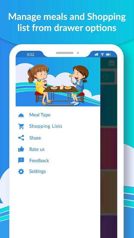 간단히 아침, 점심, 저녁 식사, 저녁 식사, 간식 등을 미리 알림으로 계획 할 수 있습니다.