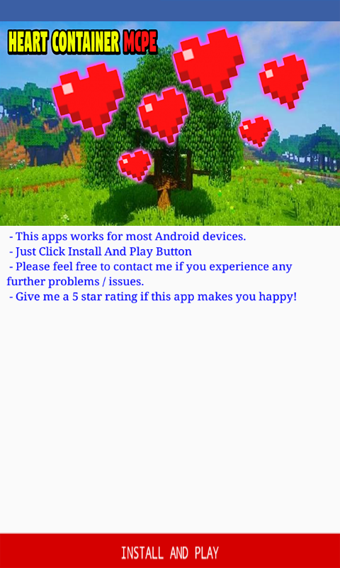 이 응용 프로그램을 사용하면 MCPE 게임에 하트 용기를 쉽게 추가 할 수 있습니다!