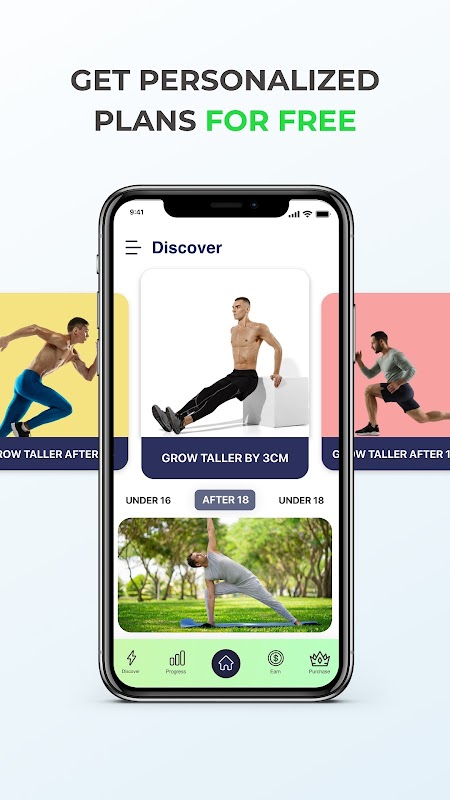 목표, BMI 및 신체 구조에 따라 수정된 키 증가 운동 계획을 제공합니다.