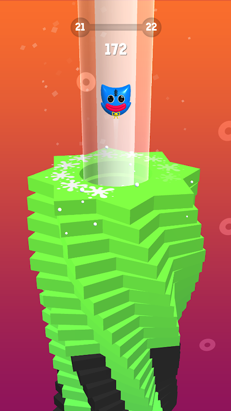 - 손가락을 잡고 있으면 공이 나선형으로 점프하고 떨어지며 스택을 부수게 됩니다.