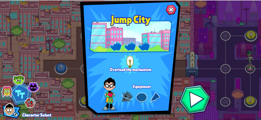 TenTitans의 기지가 있는 Jump City는 이제 5명의 적에게 공격을 받아 팀이 분리되었고, 각 팀은 서로 다른 악당과 대결하게 되며, 여러분은 각 팀원을 도와야 합니다. 로빈부터 시작해요!