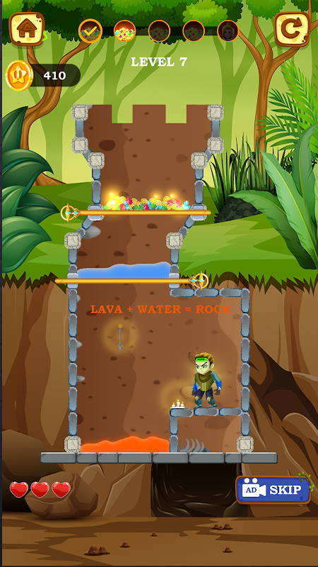 ⚔️ Solve fascinating puzzles and help a brave Hero collect all the treasures. Drag pins and destroy your enemies by pulling fiery lava and poisonous gas into their puzzle units. Cut the ropes in order to rescue the princess from the scary goblins paws.