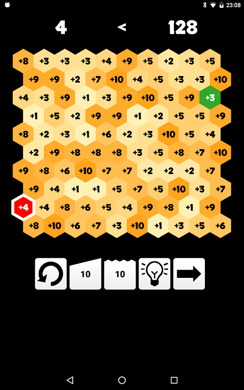 빨간색에서 녹색으로 - HexaMath에서 당신은 처음부터 끝까지 경로를 찾을 필요가있다. 길을 따라 당신은 숫자를 요약합니다. 결국 그렇지 않으면 선택한 경로를 수정해야 할 필요는, 특정 합이 있어야합니다.