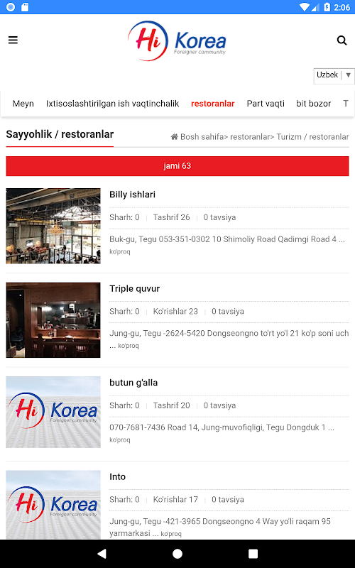 맛집, 하숙/주거, 아르바이트정보, 커뮤니티, 쇼핑몰 등과같은 정보들을