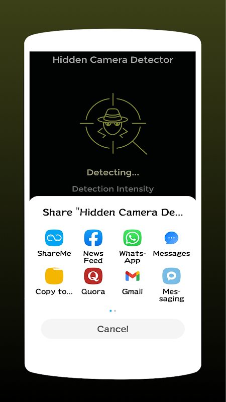 숨겨진 카메라를 감지하려면 휴대폰 서라운드를 의심스러운 사물로 이동하십시오. 감지 강도가 녹색이 아닌 경우 숨겨진 카메라 또는 전자 장치 (예 : 헤드폰 등)가있을 수 있습니다. 따라서 숨겨진 카메라와 헤드폰을 찾으려면 휴대 전화를 감지 된 장치에 더 가깝게 이동하십시오.