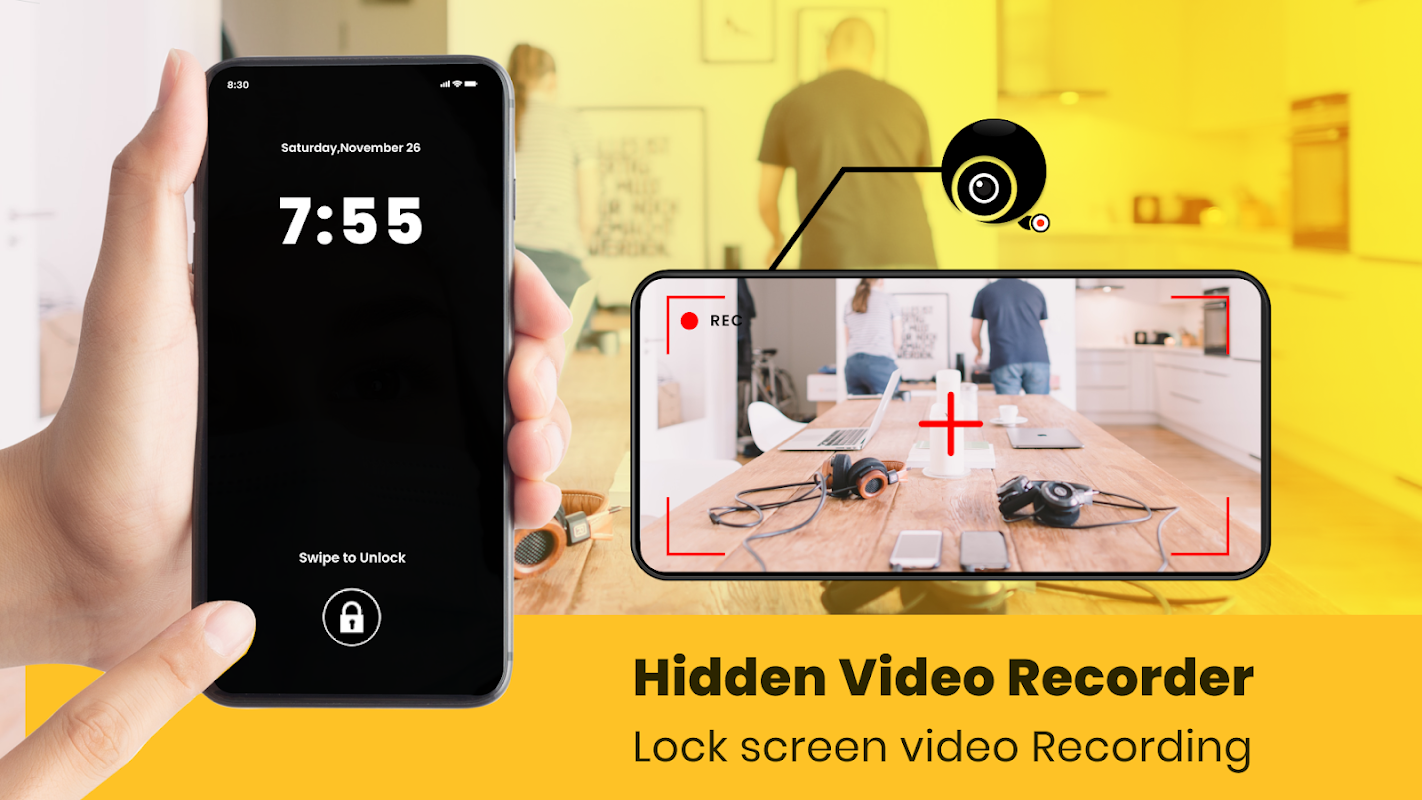 사용자는 숨겨진 보안 카메라를 통해 학교, 대학 및 기타 비싼 장소의 숨겨진 비디오를 녹화하려면 오프스크린 녹화 애플리케이션을 사용해야 합니다. 동영상은 저장 동영상 옵션을 통해 저장할 수 있습니다. 백그라운드 비디오 레코더 애플리케이션은 전면 및 후면 카메라를 통해 비디오를 녹화합니다. 숨겨진 비디오 레코더 앱은 백그라운드에서 고품질 비디오를 매우 명확하고 쉽게 녹화합니다. 사용자가 녹화를 예약한 다음 녹화를 시작하고 숨겨진 비디오 녹화를 저장할 수 있는 옵션이 있습니다. 당신은 당신의 집을 모니터링하기 위해 집에 대한 숨겨진 카메라를 사용할 수 있습니다, 집에 대한 숨겨진 카메라, 병원 숨겨진 카메라 및 보안 및 개인 정보 보호 목적을 위한 공항 비밀 카메라.