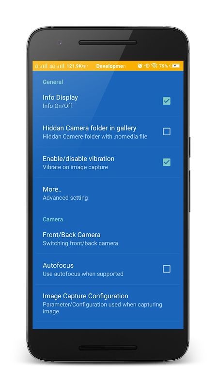 -Hidden Camera AppEnable/disable notification, screen message when start/stop recording.