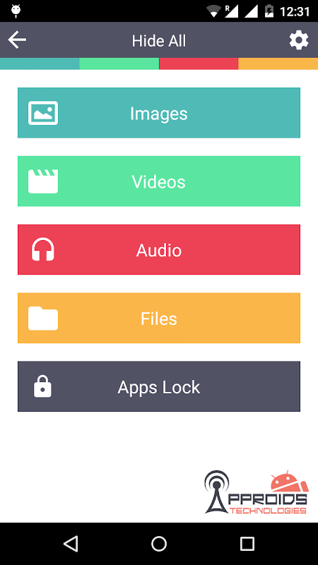 ** Hide Photos, Hide Videos, Hide Audios, Hide Files, Lock Applications.