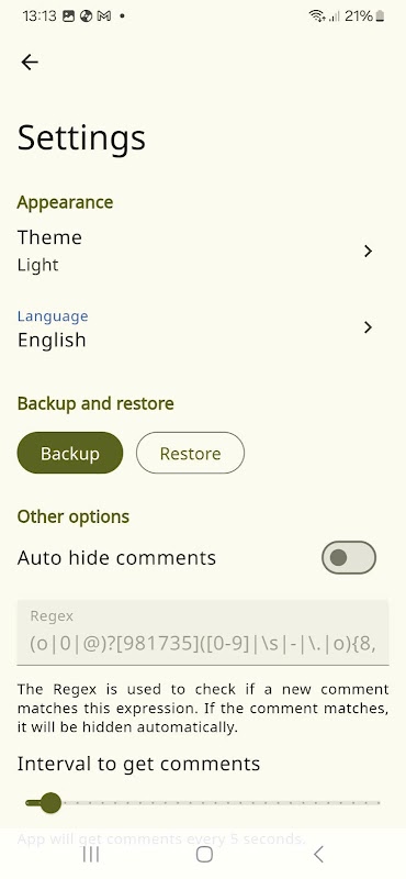 또한 댓글 내용이 정규 표현식과 일치할 때 자동 댓글 숨기기 모드를 설정할 수 있습니다. 이 기능을 사용하면 전화번호, 제품 코드가 포함된 댓글을 자동으로 숨기거나 모든 댓글을 자동으로 숨길 수 있습니다.