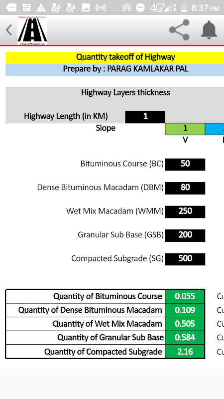 This app is all about the estimation quantity of GSB, BC, DBM, WMM & Sub grade in easy way. You can use it to calculate the quantity of listed materials for highway within the fraction of time.