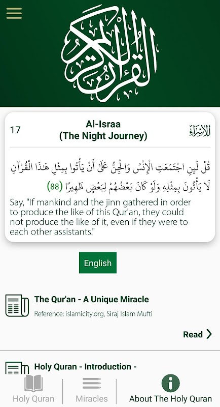 성령 꾸란의 일부 기적을 보여주는 응용 프로그램