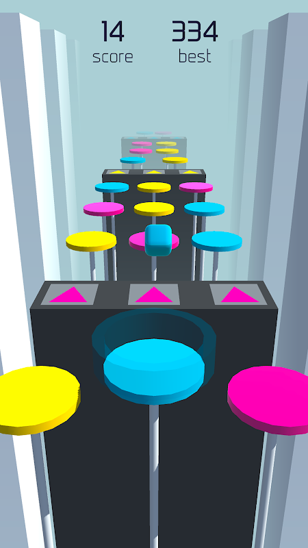 Bounce on the same color to score points.