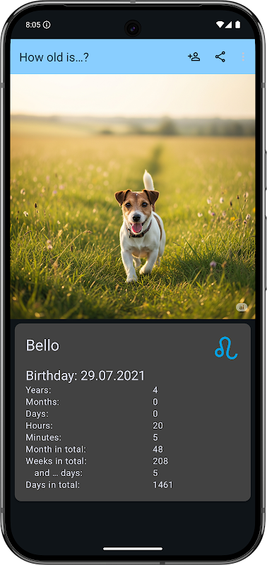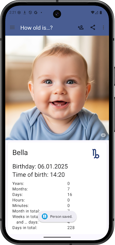 새롭게 디자인된 나이 추적기를 만나보세요. 이제 Material You를 지원합니다! 인터페이스는 기기 테마에 맞춰 색상을 자동으로 맞춤 설정합니다(밝기 및 어두운 모드 포함).