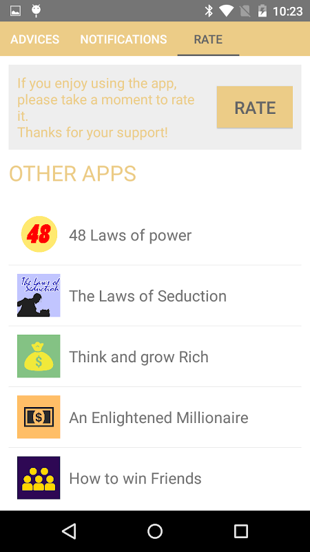 In the second section you can manage the appearance of a daily notification with the title of the current extract. Once you allow notifications, from the day that enabled them in the following days you will see a different extract, every day. Tapping in the notification, you can access the app and view its description.