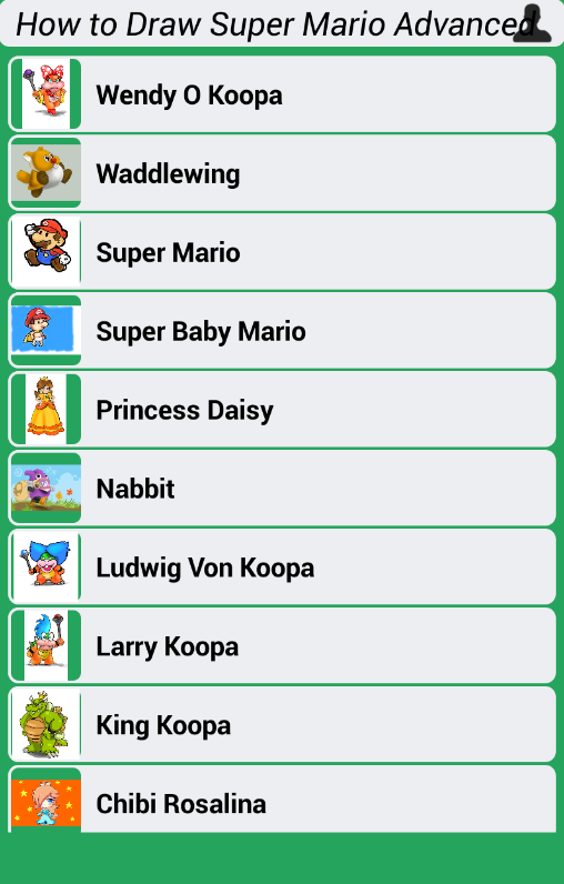 Let’s draw your favorite Super Mario characters step by step in a new application for mobile drawing! just take a paper and a pencil, choose the character you like. Amaze your friends, show them how beautiful you can draw and paint the characters of the popular Super Mario game!