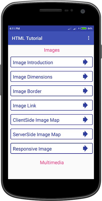 HTML Tutorial app collections of Categories are below and provide all this Topic