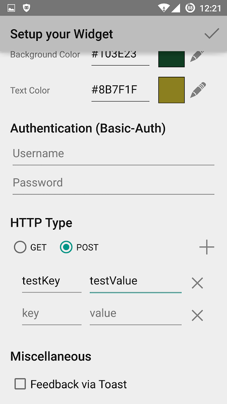 이 앱을 사용하면 백그라운드에서 위젯을 통해 HTTP (S) 요청을 실행할 수 있습니다. 현재 GET 및 POST 요청뿐만 아니라 버전 1.10에서 HTTP 헤더 수정이 지원됩니다.