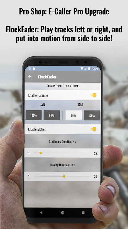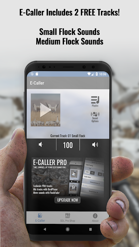 • Pro Shop을 방문하여 Snows Down Low에서 입증 된 효과적인 스노우 거위 사운드 라이브러리에 액세스하고 E-Caller Pro를 업그레이드하여 E-Caller에서 독점 트랙 및 고급 사운드 제어 기능을 해제하십시오!