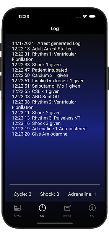 iArrest는 중요한 이벤트 또는 개입이 발생한 정확한 시간을 기록하고 사용자에게 상세한 이벤트 로그를 제공합니다. 이러한 로그는 클립 보드에 복사하여 문서화 및 기록 보관에 사용할 수 있습니다.