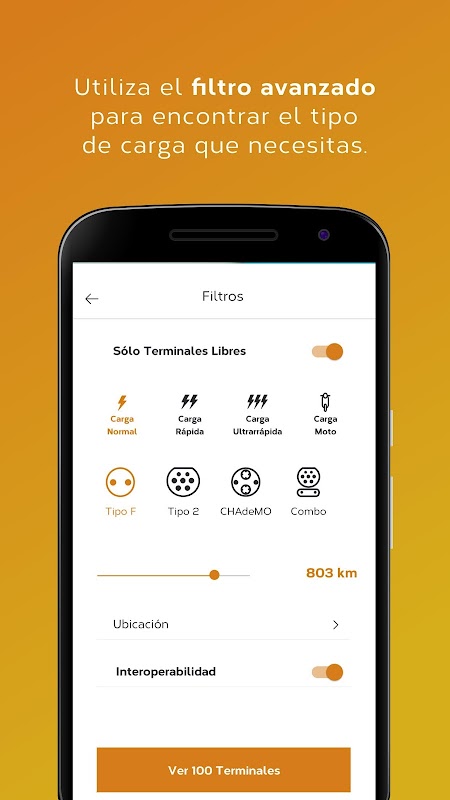 Elige el Punto de Recarga más cercano desde tu posición en más de 160 disponibles en España y pulsa en “Cómo Llegar” para mostrarte el camino, si lo necesitas. Además podrás ver el estado para saber si el Terminal está Libre o realizar una búsqueda avanzada filtrando por Conector / Ubicación / Tipo de carga: rápida, normal y motos.