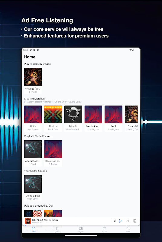 무료 모든 장치에 광고없이 어디서나 음악 라이브러리를 스트리밍.