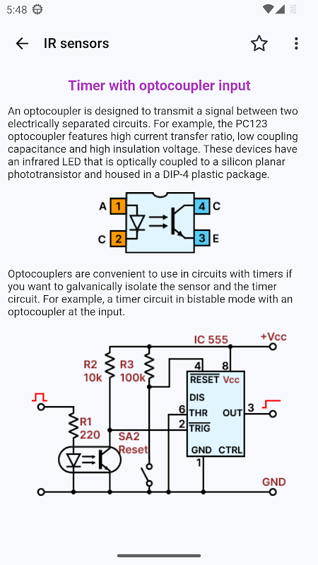 이 애플리케이션에는 IC 555 시리즈를 특징으로 하는 약 60개의 튜토리얼과 다이어그램이 포함되어 있습니다. 초보자와 숙련된 전자 매니아, 학생 및 엔지니어 모두에게 유용하도록 설계되었습니다. 이 앱은 555 타이머를 사용하여 다양한 전자 회로 및 프로젝트를 만드는 데 편리한 참고 자료 역할을 합니다.