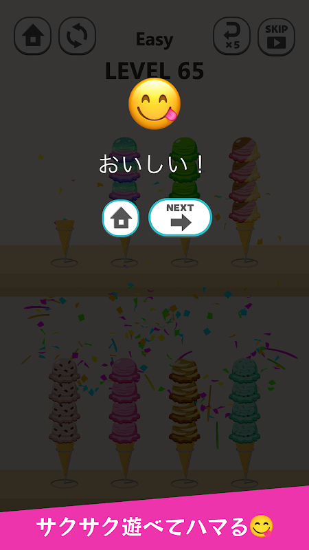 · 여러 가지 빛깔의 아이스크림을 정렬하고 레벨 클리어를 목표로하자!