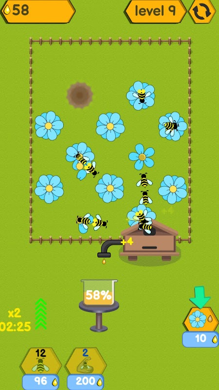 - 벌집과 빠른 꿀 공장의 진화를 과급하세요.