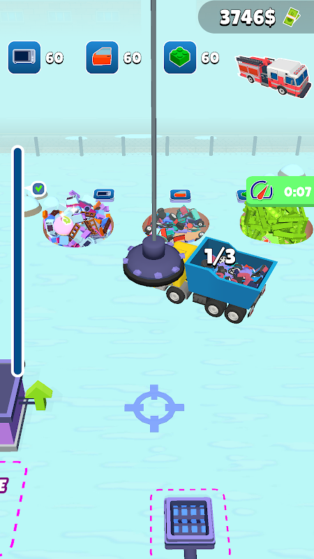 자석 집게발 기계로 쓰레기를 수거하고, 멋진 로봇 물건을 만들고, 돈을 벌어보세요!