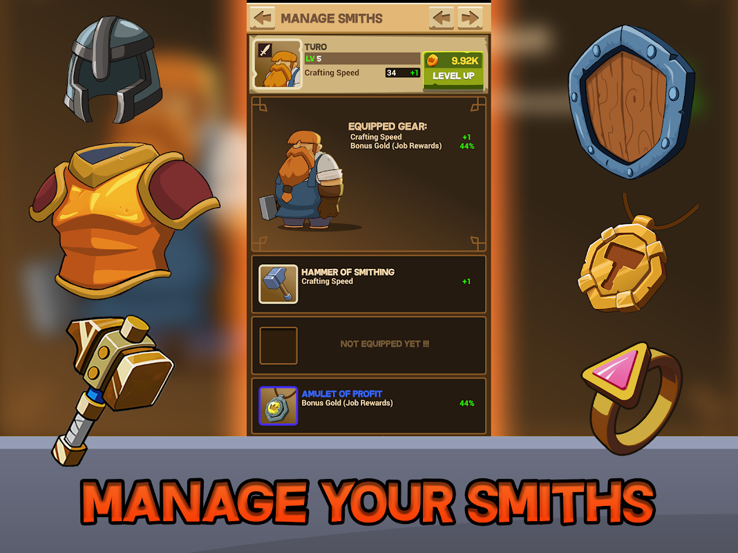 작업을 완료하고 대장장이 레벨을 올리며 새로운 제작 능력을 잠금 해제하면서 작업장을 업그레이드하십시오. 그들을 위한 전설적인 힘의 장신구를 찾고 가장 유명한 워크샵이 되십시오!