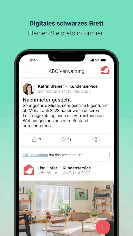 귀하의 재산에 대해 잘 알고있는 것이 중요합니다. 앱을 사용하여 최신 상태를 유지하십시오. 디지털 게시판을 스크롤하여 여기에있는 부동산 관련 뉴스를 모두 찾으십시오. 부동산 관리자가 푸시 메시지를 통해 정기적으로 알려드립니다. 의견이나 우려 사항이 있습니까? 그런 다음 게시물 아래에 댓글을 달기 만하면됩니다.